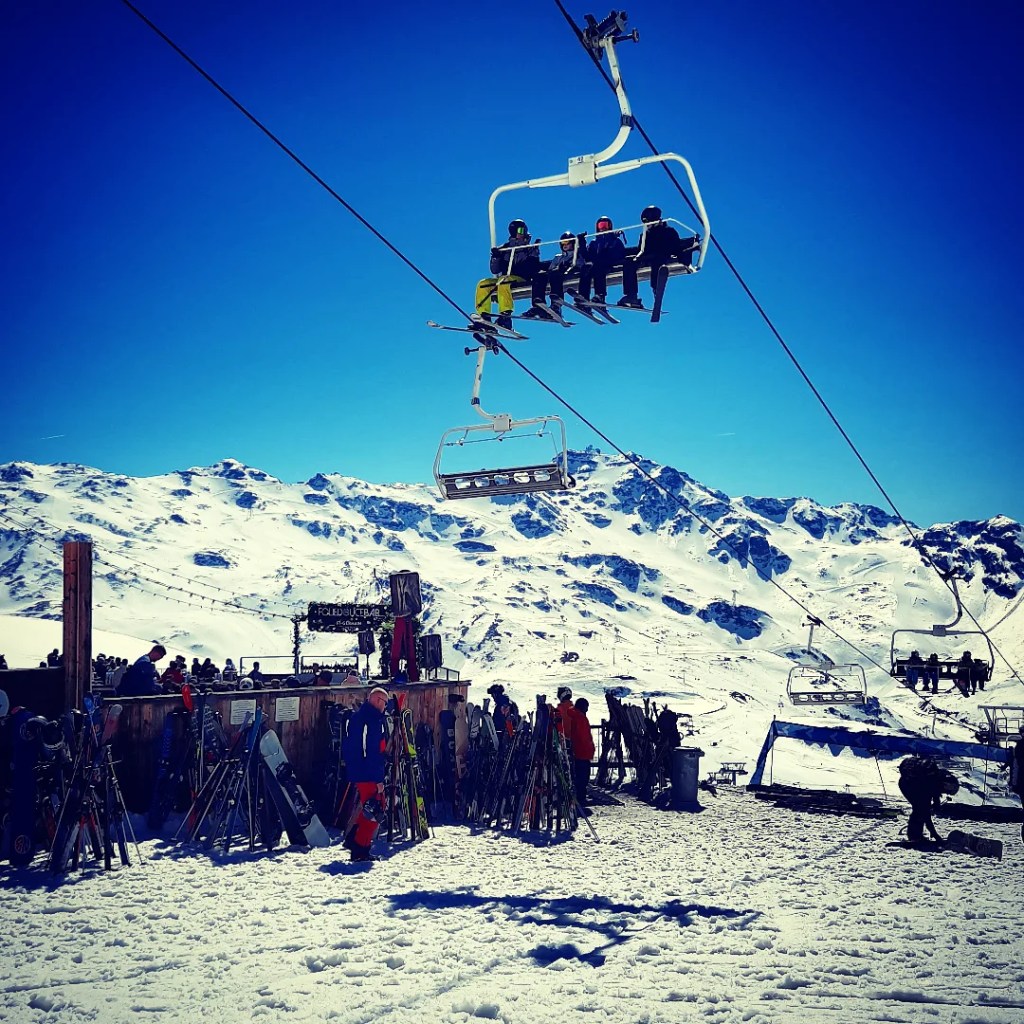 Here I am in an apartment in Les Menuires. Yesterday the three of us skied to Courchevel. Such a large area, not normal. Les 3 Vallées. Les Orres, Val Thorens, Les Menuires, Méribel and Courchevel. The weather has been beautiful here all week. Only sun. And warm. And still good snow. I thought that ski trip with Paulien could never be topped, but this is at least as fun and wonderful. Paradise.
