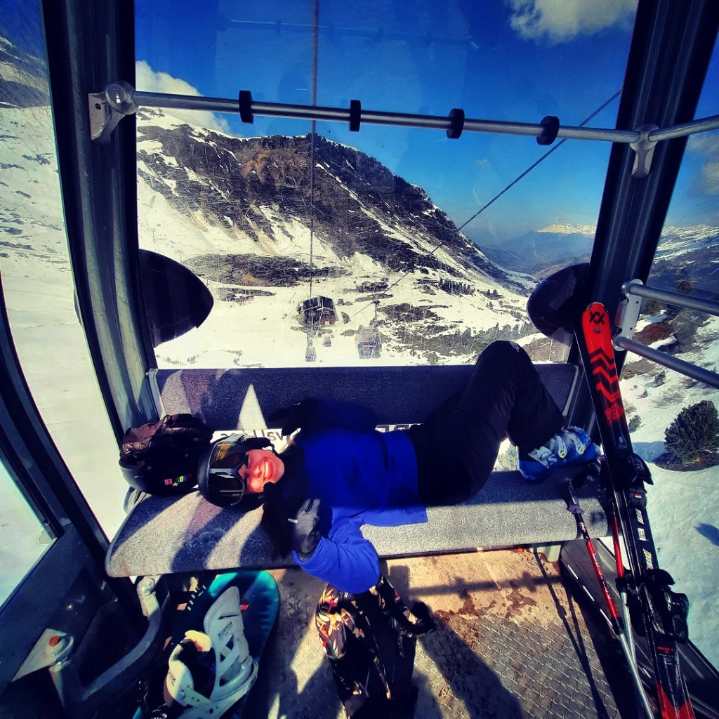 Yesterday Romée had an accident. Probably a ski's thumb and she won't be allowed to ski anymore. That's a fucking bummer because I had so much fun skiing with the three of us. It was good for our band! And of course it still is. She is now looking at Casa de Papel. Fantastic series. So it's not all that bad. Maybe we'll try to ski down a slope tomorrow or Friday. Without ski poles then. She just can't fall on it again. Apparently something really stupid, a ski thumb. Because your hand is covered by a strap to avoid losing your skis, you can really hurt yourself if you fall. Your thumb then bends completely over the ski pole and a ligament can be seriously damaged. Have another ultrasound done at home to see how serious it is.